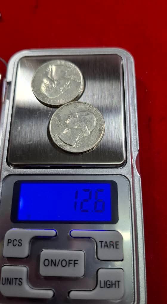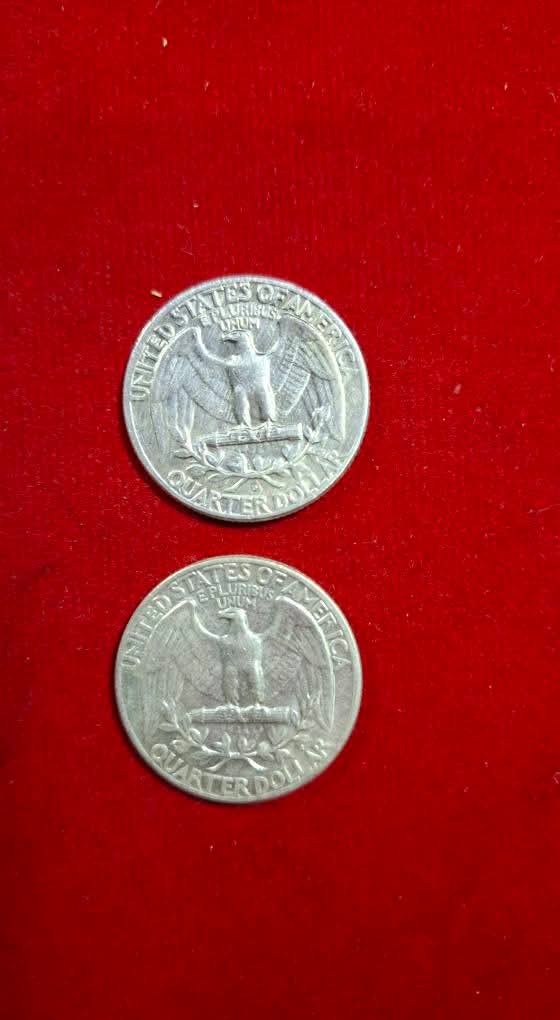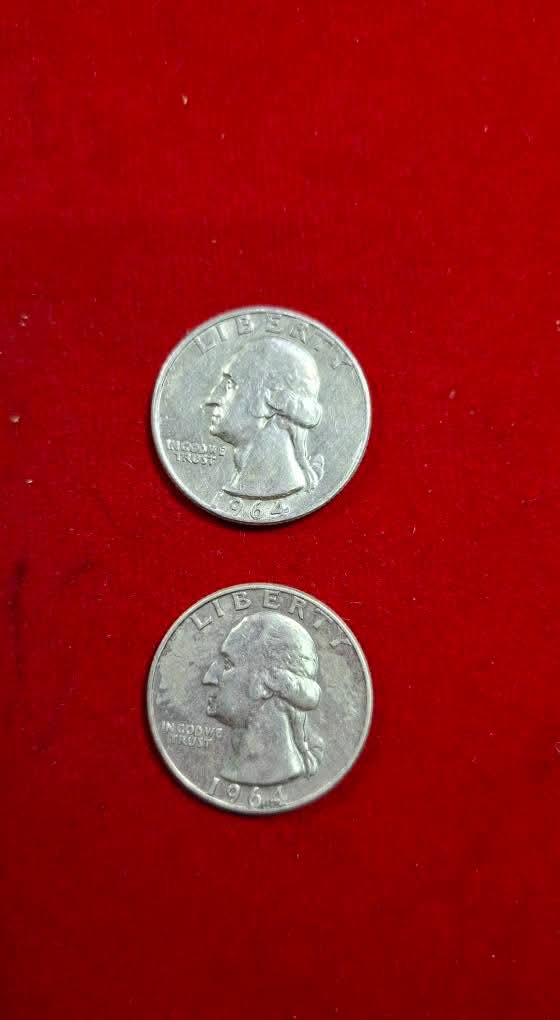 เหรียญควอเตอร์ (Quarter) ของสหรัฐอเมริกาที่ผลิตในปี 1964 ผลิตปีสุดท้ายที่ทำจาก เนื้อเงิน90% (2 เหรียญ) |
