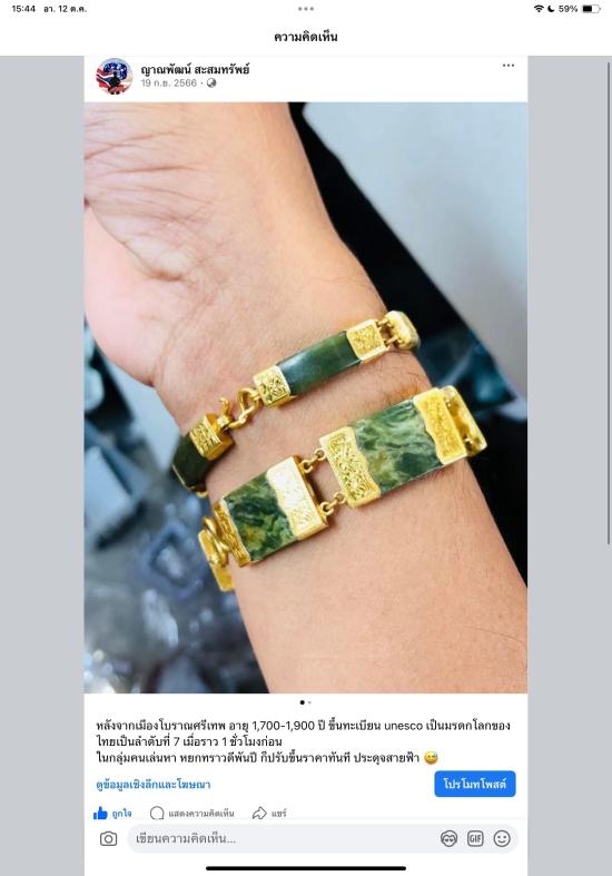 หยกทราวดีพันปี แกะจากหัวแหวนทองคำ หากประมูลไปทำเครื่องประดับแจ้งช่างให้ปัดหน้าพลอยใหม่จะกลับมาเงางามขึ้น |