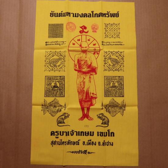 ผ้ายันต์มหามงคลโภคทรัพย์ หลวงพ่อเกษม ขนาด 11 X 17 นิ้ว ..เลข 479.....68.9.26 |