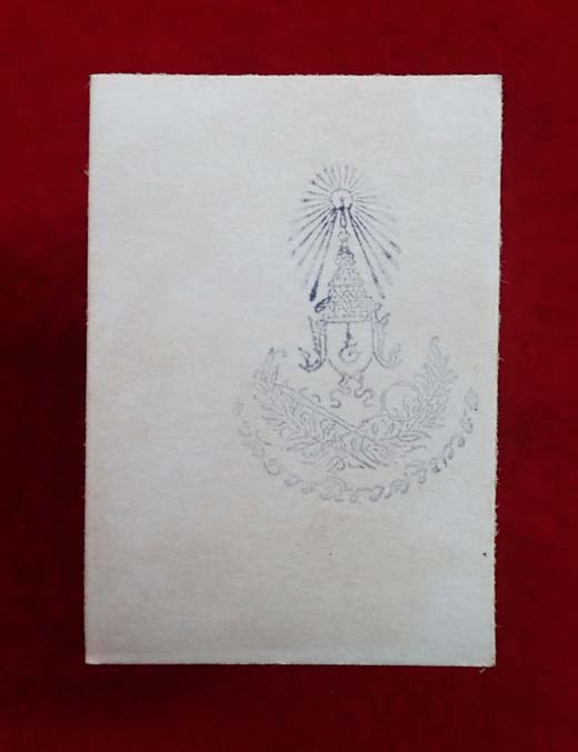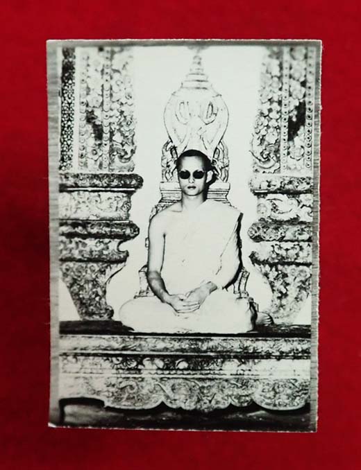 รูปขาวดำเก่า กระดาษหนังไก่ (ขนาด 2.7 x 4 ซม.) ในหลวงทรงผนวช หลังตรายาง (แบบเดียวกับตลับใส่เหรียญในหลวงทรงผนวช) วัดบวรนิเวศ