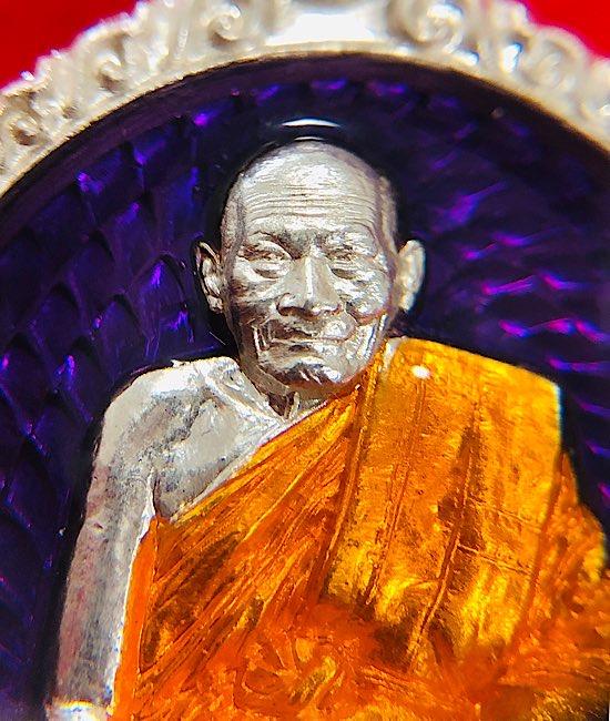หลวงปู่มหาศิลา เปิดโลก เนื้อเงินลงยาม่วง จมูกโด่ง เลขสวย 54= 9 กล่องเดิม หมุนเวียนน้อยมาก เหรียญจริงสวยแชมป์ๆ