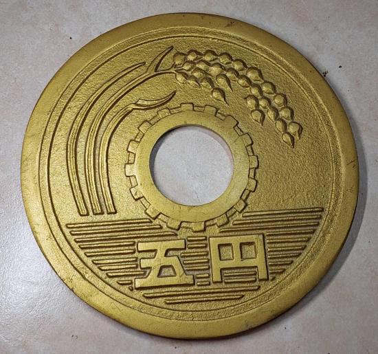 ***วัดใจ***เหรียญ 5 เยนยักษ์หายาก ย้อนยุค ปี 1978 เครื่องรางนำโชค เครื่องรางระดับเทพของคนญี่ปุ่น ขนาดใหญ่บูชา 7.5 นิ้ว |