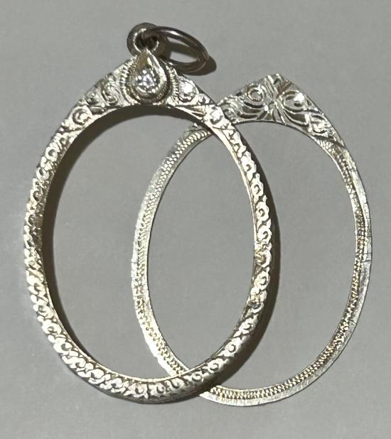 วัดใจ กรอบเงินฝังพลอยซุ้มบน มือ2 สภาพสวย เลี่ยมพระใส่ไว้ไม่เคยแขวน ขนาดหน้าจอกรอบตามรูป