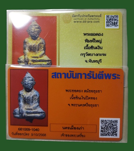 พระยอดธง สมัยอยุธยา (กรุบางกะจะ) เนื้อชินเงิน พิเศษพิมพ์ใหญ่
