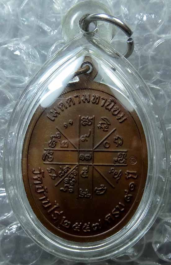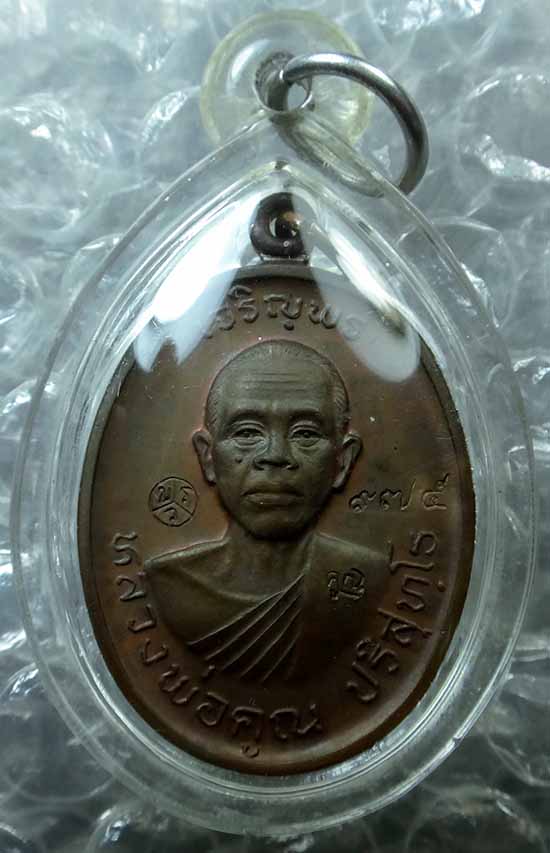 หลวงพ่อคูณ เหรียญเจริญพรบน 2 พรหมเทพ เนื้อทองแดงมันปู บล๊อคทองคำ เลข No.975 พร้อมเลี่ยม |