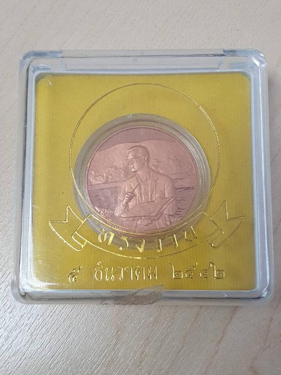 เหรียญทองแดงขัดเงา รัชกาลที่ 9 ทรงงาน ปี พ.ศ.2542 พร้อมกล่องเดิม ตรงวาระ |