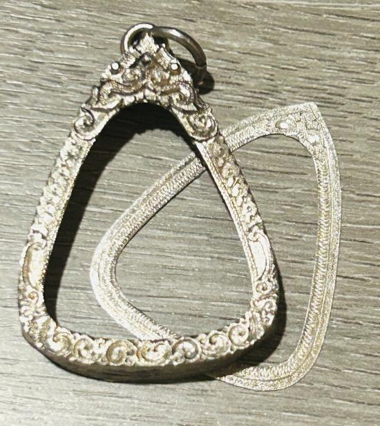วัดใจ กรอบเงินแท้ สั่งทำ มือ2 %ดี งานยกซุ้มสวยๆ เลี่ยมใส่พระไม่เคยแขวนคับ
