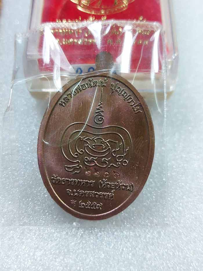 เหรียญหลวงพ่อพัฒน์ วัดห้วยด้วน เจริญพร(รุ่นแรก) ปี ๕๙ เนื้อโลหะผสมชนวน เลข ๒๒๐๖ สภาพจมูกโด่งๆผิวสวยงาม กล่องเดิม |