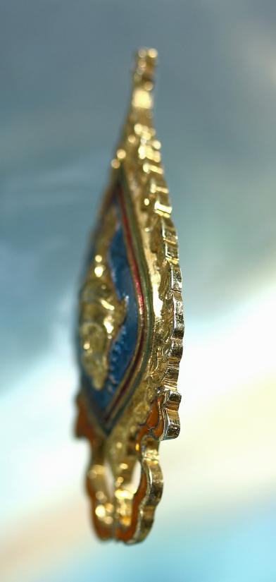 เหรียญปั๊มพ่อแก่กะไหล่ทองลงยาไท่ทราบที่