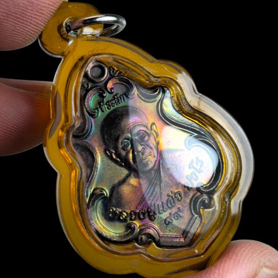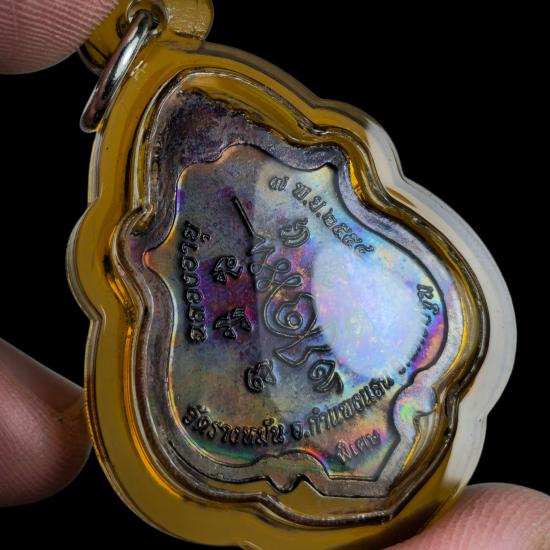 เหรียญ ปาดตาล หลวงปู่แผ้ว ปี 54 เนื้อทองแดง เลี่ยมพลาสติกกันน้ำ ผิวรุ้ง