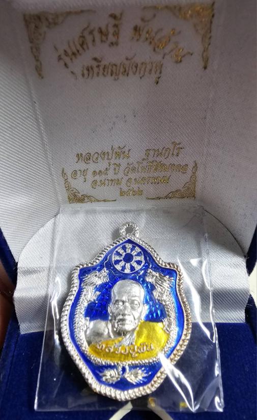 หลวงปู่พัน ฐานกโร รุ่นเศรษฐีพันล้าน เหรียญมังกรคู่.อายุ ๑๑๕ปี วัดโพธิ์ชัยมงคล อ.นาทม จ.นครพนม..เนื้อเงินลงยา เลข ๙๑ สวยๆกล่องเดิมๆคับ...
