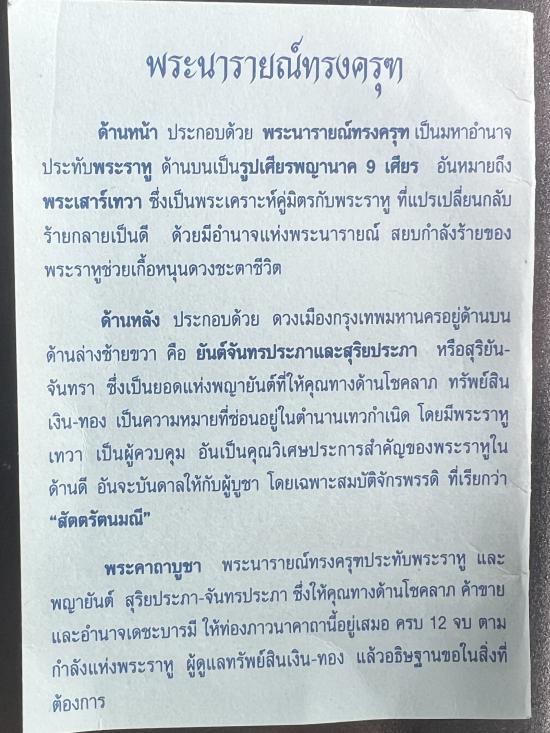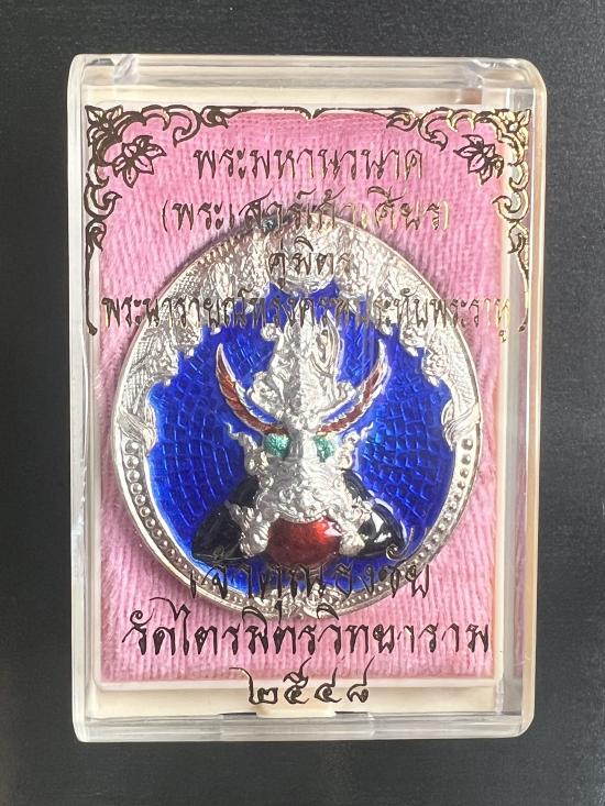 เหรียญนารายณ์ทรงครุฑประทับราหู ท่านเจ้าคุณธงชัย วัดไตรมิตร ปี 48 เนื้อเงินลงยา พิมพ์ใหญ่ พร้อมกล่องเดิมและใบแสดงรายละเอียดครบ |