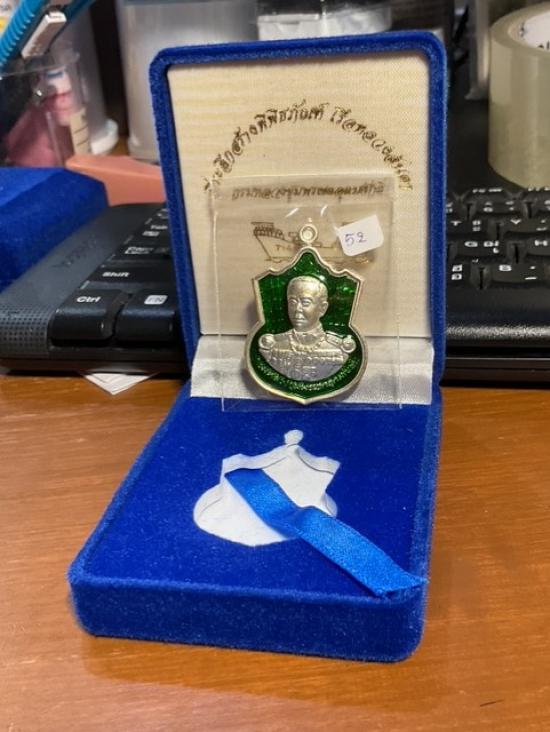 กรมหลวงชุมพรฯ รุ่นที่ระลึกสร้างพิพิธภัณฑ์เรือหลวงลันตา เหรียญเนื้อเงินลงยาสีเขียว หมายเลข 52 มาพร้อมกลองเดิมๆครับ