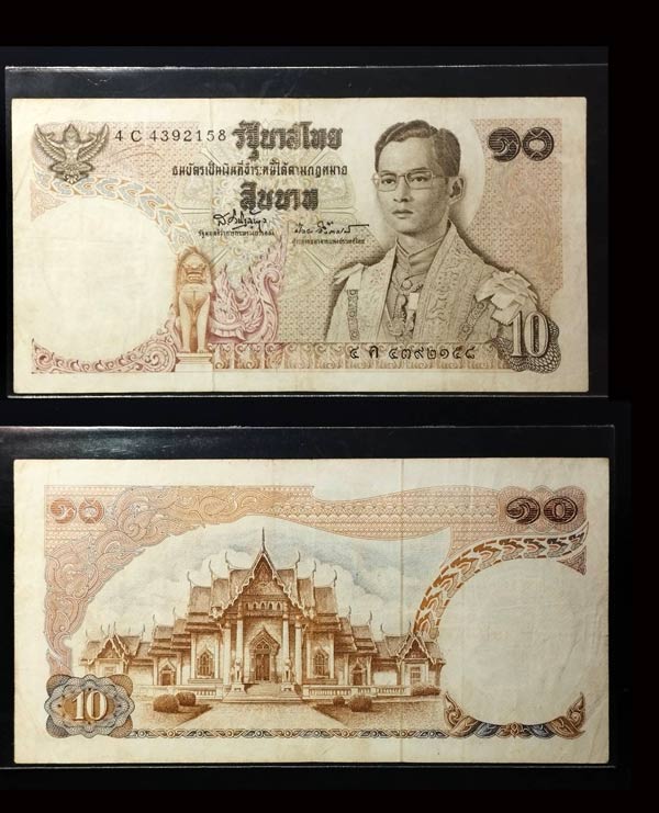 2.ธนบัตร ในหลวงรัชกาลที่ 9 ชนิดราคา 10 บาท จำนวน 1 ฉบับ
