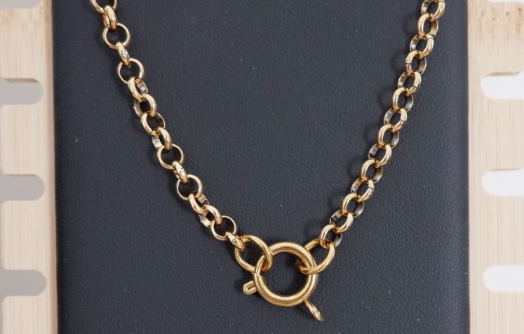 สร้อยสแตนเลสงานเลเซอร์ทอง ลายผ่าหวาย ยาว 26 นื้ว พร้อมห่วงสปริงรังดุมสแตนเลสงานเลเซอร์ทอง |