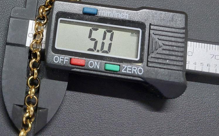 สร้อยสแตนเลสงานเลเซอร์ทอง ลายผ่าหวาย ยาว 26 นื้ว พร้อมห่วงสปริงรังดุมสแตนเลสงานเลเซอร์ทอง เม็ดผ่าหวายขนาด 5 มม. |