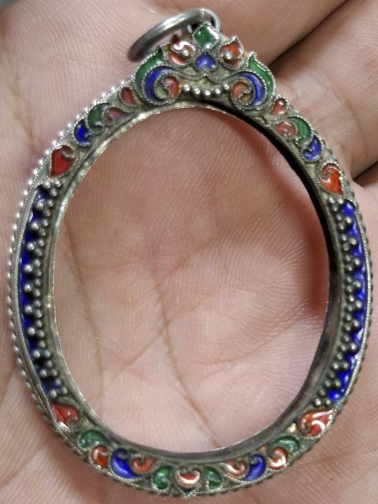 กรอบเงิน ลงยา มือสอง รูปใข่ ขนาดหน้าจอ 3.3x4.0 ซม.