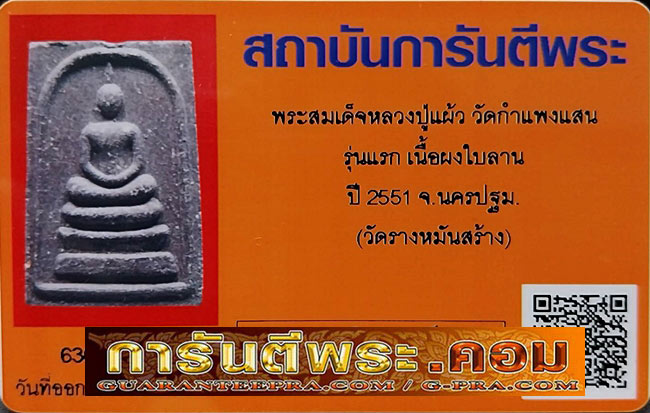 สมเด็จหลวงปู่แผ้ว วัดกำแพงแสน "รุ่นแรก" เนื้อผงใบลาน ปี2551(วัดรางหมัน)