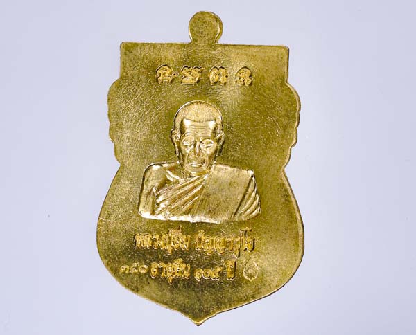 *เหรียญเสมาอายุยืน115ปี หลวงปู่อิ่ม วัดทุ่งนาใหม่ ด้านหน้า พ่อท่ายคล้าย วาจาสิทธิ์ หลังหลวงปู่อิ่ม เนื้อทองทิพย์ลงยา |