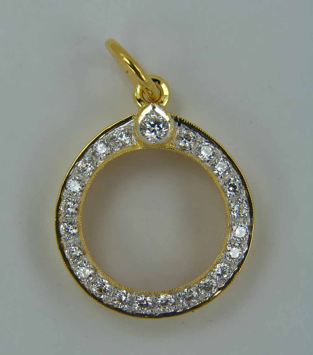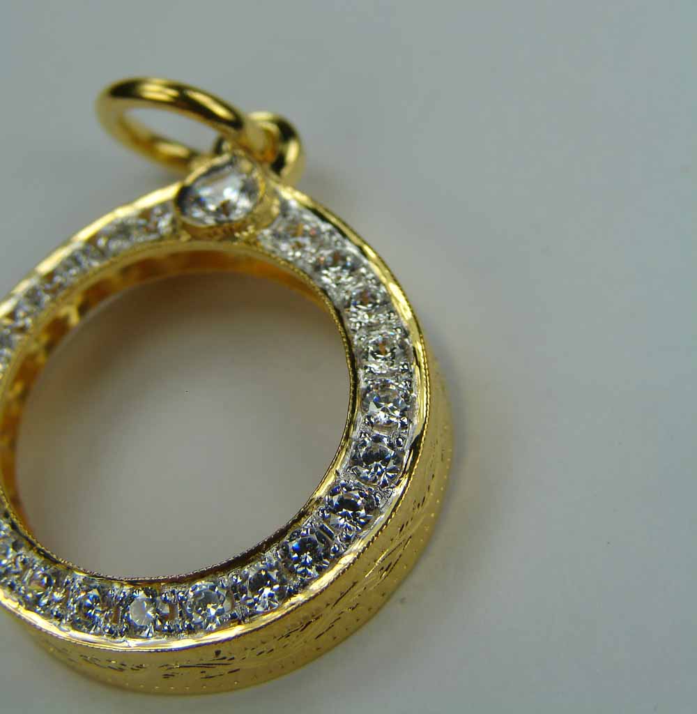 กรอบทองคำ ล้อมเพชร ทรงกลม ขนาด เส้นผ่าศูนย์ กลาง 1.6 ซม. ใส่ ลูกอม , เหรียญเม็ดกระดุม หลวงพ่อสาคร วัดหนองกรับ หรือไซด์ไกล้เคียง ( ฝังเพชร CZ 24 เม็ด ตรง Size ) ชุบหน้าขาว งานขึ้นมือ น้ำหนัก 3.39 กรัม