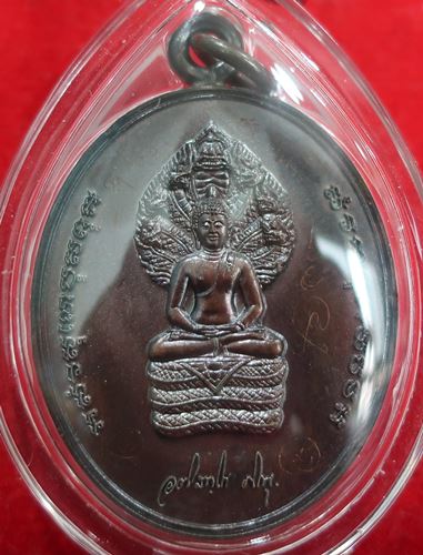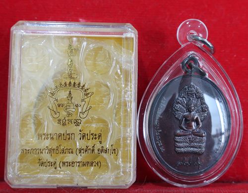 เคาะเดียว เหรียญนาคปรกเจริญพร พระมหาสุรศักดิ์ วัดประดู่ฯ ทองแดงรมดำ จารเต็มหน้าหลัง หมายเลขสามหลัก พร้อมเลี่ยม |