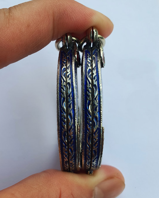 ตลับเงินรูปไข่ยกซุ้มลงยาอย่างดี ยกคู่ 2 ใบ สภาพดีเหมือนใหม่ ใส่เหรียญขนาด 2.7x3.5 ซม. |