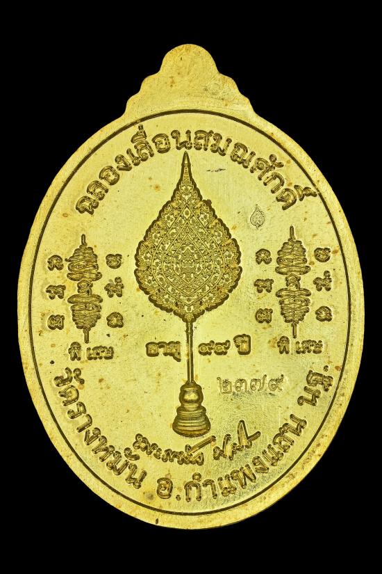 เหรียญฉลองเลื่อนสมณศักดิ์ หลวงปู่แผ้ว ปวโร วัดรางหมัน นครปฐม อายุ ๙๙ ปี พร้อมกล่องเดิม เนื้อฝาบาตร
