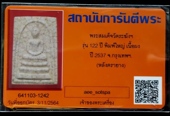 ^_^ คัดสวย ^_^ พระสมเด็จวัดระฆังพิมพ์ใหญ่ทรงนิยม (( รุ่น 122 ปี เนื้อผงแตกลายงา นิยม)) พร้อมบัตร หลังตายางชัดๆ พร้อมกล่องเดิม vison plastic ไม่แพงครับ เคาะเดียวแดงครับ