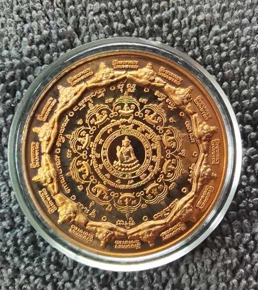 เหรียญฉลองพระเกียรติ 3 ซม ทองแดงขัดเงาพร้อมตลับเดิม
