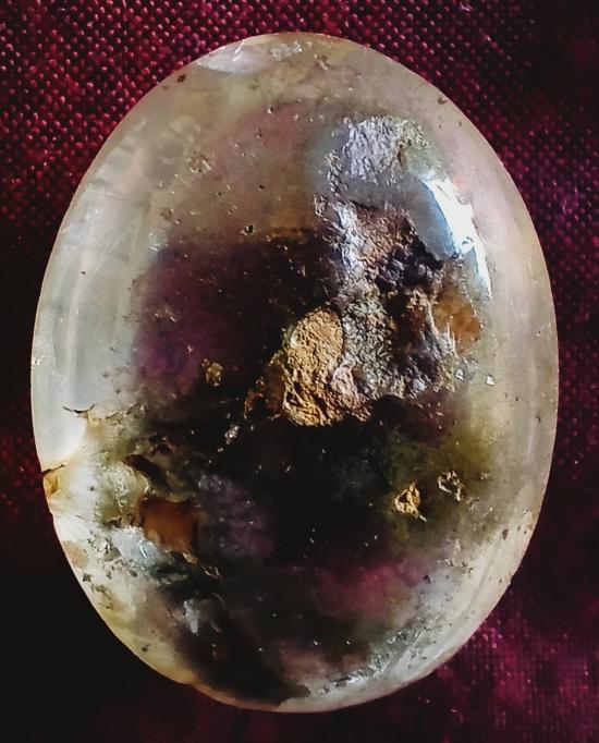 แก้วขนเหล็ก กาบเงิน เจียรหลังเต่าใหญ่ ขนาดประมาณ 3 X 4 เซ็นต์ สภาพสวยไม่ผ่านการใช้ตามรูป แก้วขนเหล็ก กาบเงิน เป็นแก้วโป่งข่ามชนิดหนึ่ง หรือชื่อหินควอตซ์ชนิดหนึ่งที่มีแร่ธาตุอื่นๆ แทรกอยู่ในเนื้อ ทำให้เกิดลวดลายและสีสันต่างๆ ภายในหิน เชื่อว่าโป่งข่ามเป็นของขลัง มีพุทธคุณ ช่วยเสริมโชคลาภ ป้องกันภัย และเป็นสิริมงคลแก่ผู้ครอบครอง ส่งฟรีทั่วไทย รับประกันตามกฎครับ |