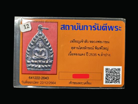 ชื่อพระเครื่อง เหรียญเจ้าสัว หลวงพ่อเกษม พิมพ์ใหญ่ เนื้องทองแดง ตอก 2 โค๊ต กล่องเดิมพร้อมบัตรรับรองครับ