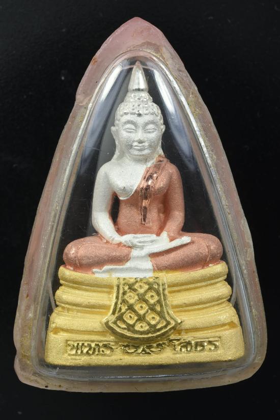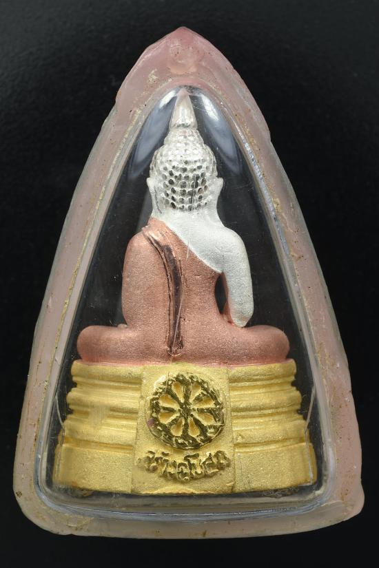 พระรูปหล่อหลวงพ่อโสธร รุ่นสร้างพระอุโบสถ ปี2539 เนื้อเงินพ่นทราย 3กษัตริย์ เลี่ยมกรอบพาสติก แกะทองกรอบออก |