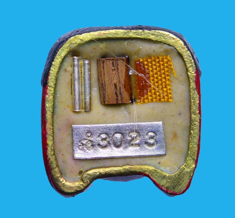หน้าพราน รุ่นเพชร ทักษิณ เนื้อโลหะ หน้า แดง * หน้าพรานชุดนี้ ด้านหลังมีจีวรเกศา * หลวงปู่เขียว มีตะกรุดเงินจารมือ. มีไม้รอดโบสถ์ |