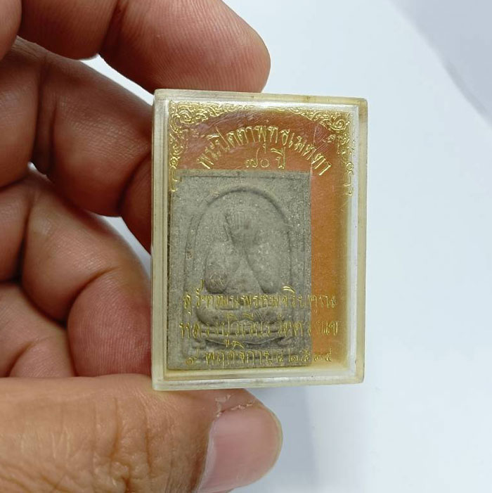 พระปิดตาพุทธเมตตา พิมพ์สี่เหลี่ยมหลังยันต์ดวง ๗๐ปี หลวงปู่วิเวียร วัดดวงแข พ.ศ.๒๕๓๔ สวยๆกล่องเดิมๆ