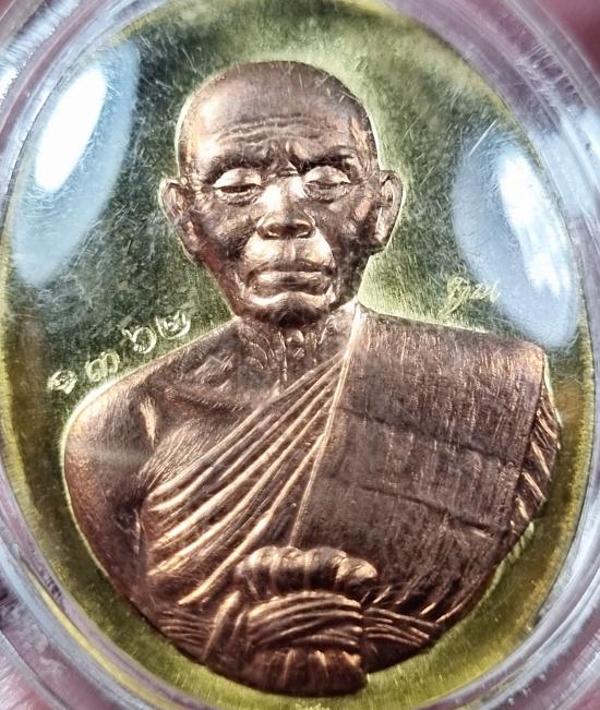 เหรียญไข่ ปฎิหารย์eod เนื้อทองฝาบาตรหน้ากากทองแดง พร้อมเลี่ยม |