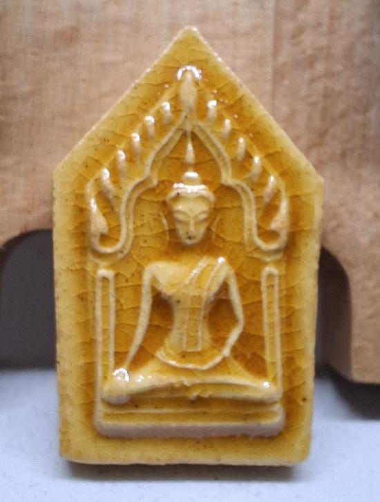 องค์นี้เป็นพระพิมพ์ขนาดจิ๋ว มีขนาด 1.7 X 2.7 c.m. เคลือบสีเขียวด้านหน้า หลังยันต์หมึก มาพร้อมกล่องเดิม