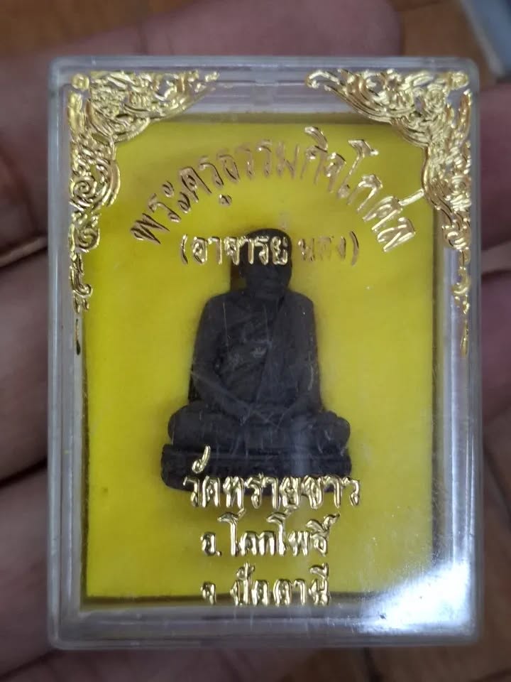รูปหล่อ อ.นอง วัดทรายขาว เนื้อว่า่น อายุ 79 ปี ฝังตระกรุดเงิน ปี 2541 กล่องเดิม |