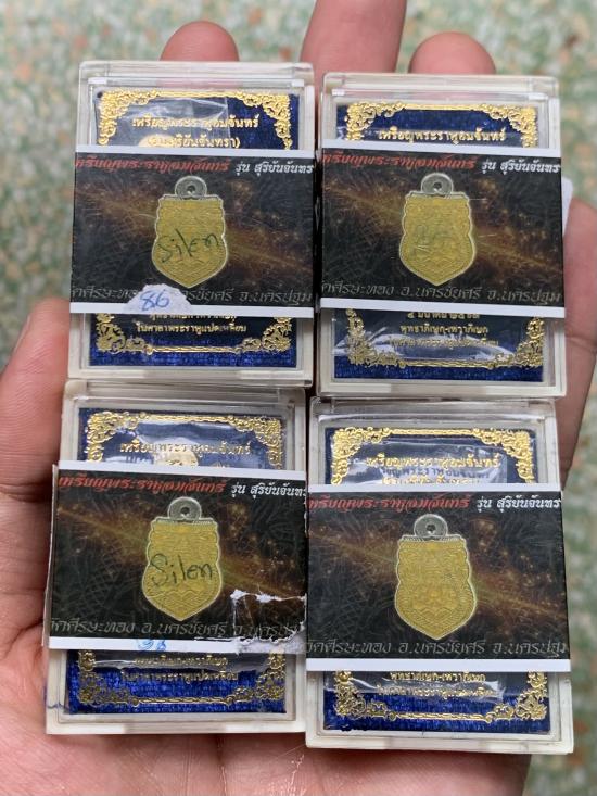 วัดใจ40 เหรียญพระราหูอมจันทร์ รุ่นสุริยันจันทรา วัดศีรษะทอง จ.นครปฐม ลงยาสีเหลือง ปี 2563 รวม4เหรียญกล่องเดิม