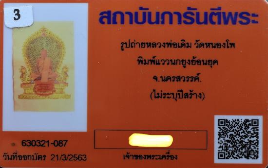 ( 3 ) รูปถ่ายหลวงพ่อเดิม วัดหนองโพ พิมพ์แววนกยูงย้อนยุค ปี 2516 จ.นครสวรรค์ (หลวงพ่อน้อยสร้าง) มาพร้อมบัตรรับรองพระแท้การันตีพระ |
