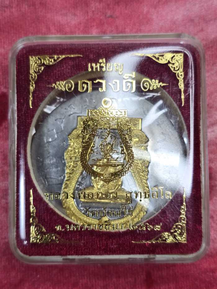 เหรียญดวงดี หลวงพ่อทอง วัดบ้านไร่ เนื้อชินตะกั่วกลมไม่ตัดปีก หน้ากากขอบฝาบาตร องค์ฝาบาตร พร้อมจารย์มือเต็มสูตร แจกกรรมการ ตอก9รอบ เลข 971 พร้อมกล่องเดิม |