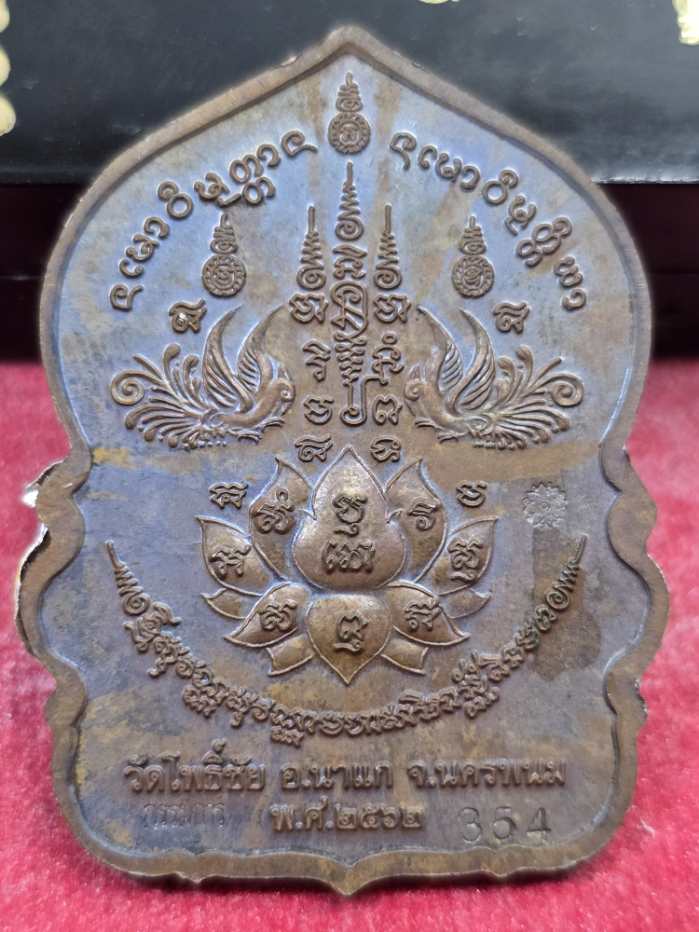 นั่งพานแสงพันล้าน เนื้อนวะโลหะหน้ากากเงินฝังพลอย เลข 354 แยกชุดกรรมการ หลวงปู่แสง วัดโพธิ์ชัย ปี 62 พร้อมกล่องเดิม |