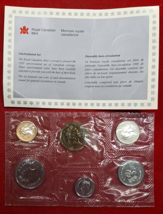 ชุดเหรียญกษาปณ์แคนาดาที่ไม่ได้หมุนเวียน (Uncirculated Set) ของปี 1995 ซึ่งผลิตโดยโรงกษาปณ์แคนาดา (Royal Canadian Mint |