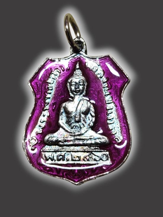 A1879.เหรียญกะไหล่เงินลงยา หลวงพ่อโสธร ย้อนยุค รุ่นฉลองกุฏิ วัดเจริญศรีราษฎร์ ระยอง กล่องเดิม |