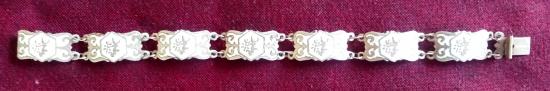 สร้อยข้อมือเงินผสม หรือ แปะตั้ง ลายนางมณีฯ ลงถมยาฯ สีขาว (รหัส 140361150.2) |
