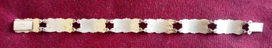 สร้อยข้อมือเงินผสม หรือ แปะตั้ง ลายนางมณีเมฆขลาล่อแก้ว ลงถมยาราชาวดี สีขาว (หายาก) ขนาดยาวประมาณ 7.5 นิ้ว ตอก SIAM STERLING ราง ๆ สภาพสวยตามรูป เป็นงานที่มีอายุกว่า 50 ปี โดยประมาณ ในช่วง 2510-2518 ที่มีทหารอเมริกันเข้ามาตั้งฐานทัพในไทย ทั้งทหารและครอบครัวผู้ติดตามไม่ต่ำกว่า 50,000 คน ได้เข้ามาอยู่เมืองไทย พวกเขามีความทรงจำดี ๆ กลับไปมากมาย และหวนระลึกที่จะกลับมาอีกครั้ง ในสมัยนั้นของที่ระลึกจากประเทศไทยที่ดูมีคุณค่าเพราะทำด้วยมือและหัวใจจริงๆ คือ เครื่องถมเงิน และเครื่องเงินลงยาหลากสีสัน มีทั้งเครื่องประดับ กล่องยาสูบ ที่เขี่ยบุหรี่ ช้อน และภาชนะต่าง ๆ งานเก่าหายากควรค่าแก่การสะสมครับ สภาพตามรูป ส่งฟรีทั่วไทย รับประกันตามกฎครับ |