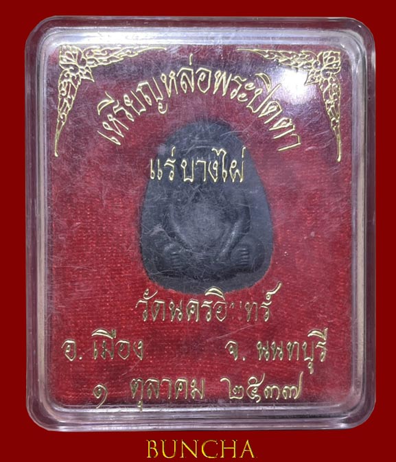 !!!...วัดใจ...พระปิดตาแร่บางไผ่ วัดนครอินทร์ นนทบุรี รุ่นแรก พิมพ์ใหญ่ ไม่ตัดปีก ปี2537 มวลสารแร่บางไผ่อันสุดยด สร้างน้อย หายาก กล่องกำมะหยี่เดิมๆครับ...!!!