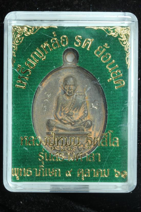 ** เนื้อเหล็กน้ำพี้(ทนสิทธิ์) ** เสกใหญ่ 2 วาระ เสกวัดบ้านจาน+วัดระฆังโฆษิตาราม เหรียญหล่อ รศ. ย้อนยุค รุ่นสร้างศาลา ปี 2561 หลวงปู่หมุน หมายเลข 815 พร้อมกล่อง |
