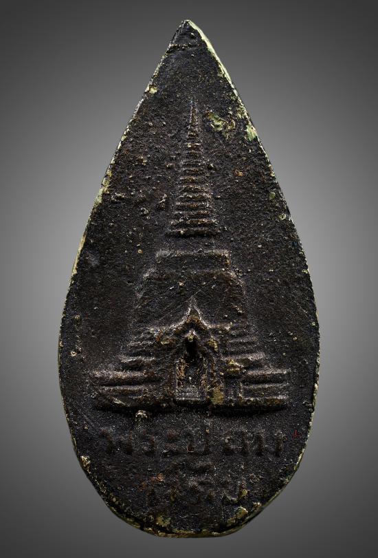 เหรียญหล่อใบมะยม ประมาณปี 2485 -2487 พระร่วงโรจนฤทธิ์ หลังองค์พระปฐมเจดีย์