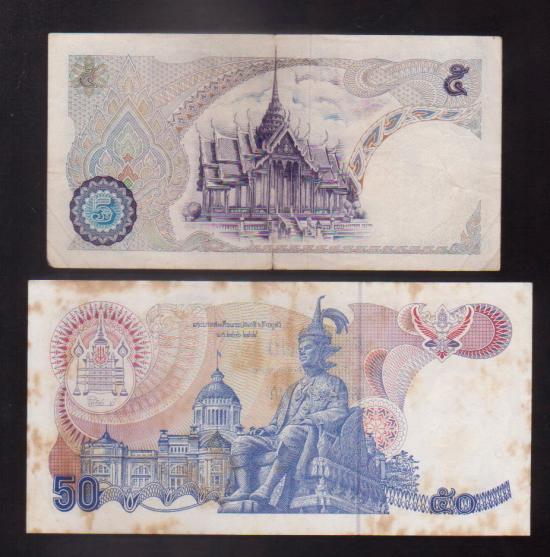 ## ธนบัตร 2 ฉบับ ## ธนบัตร 50 บาท (ลายน้ำย่า ) ## ธนบัตร 5 บาท แบบ11 ##
