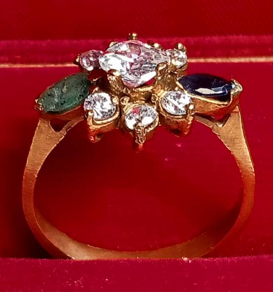 แหวนทองเหลือง ไพลิน มรกต ทรงดอกไม้ แถม แหวนงานจิวเวอร์รี่อีก 1 วง (รหัส 30076560.3) |
